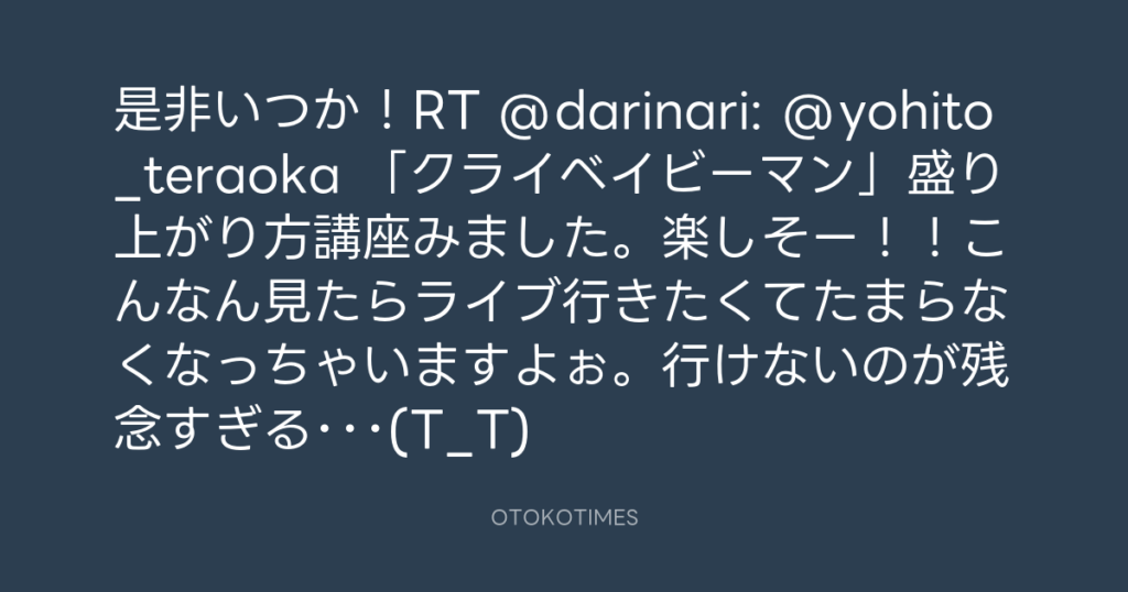 是非いつか!RT @darinari: @yohito_teraoka 「クライベイビーマン」盛り上がり方... -
