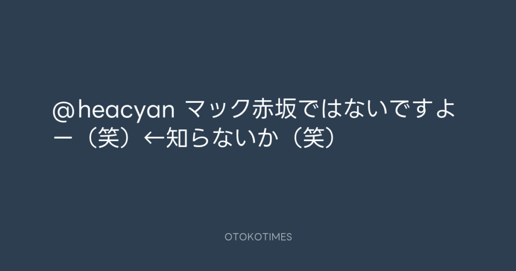 @heacyan マック赤坂ではないですよー(笑)←知らないか(笑) -