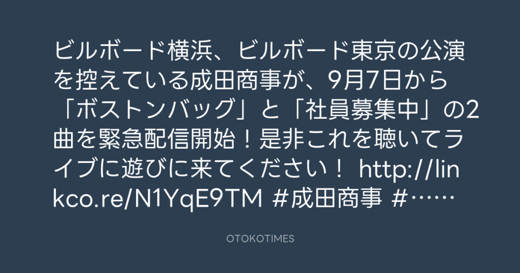 ビルボード横浜、ビルボード東京の公演を控えている成田商事が、9月7日から「ボス... -