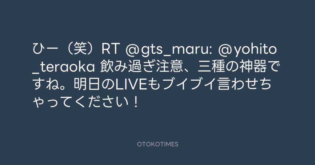 ありがとう(^_^)RT @poooq2: @yohito_teraoka 呼人さーん!聴きましたー!めっちゃ... -
