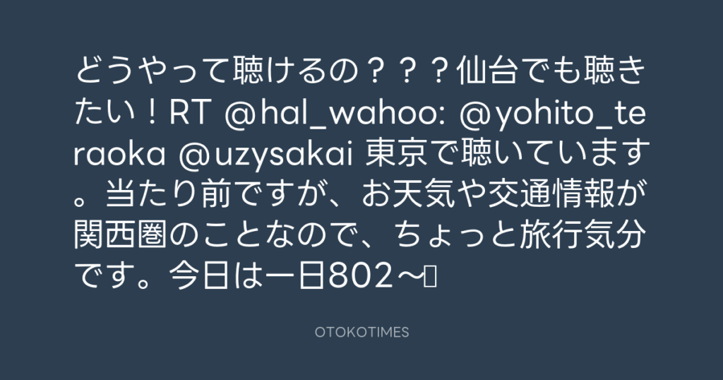どうやって聴けるの???仙台でも聴きたい!RT @hal_wahoo: @yohito_teraoka @uzy... -