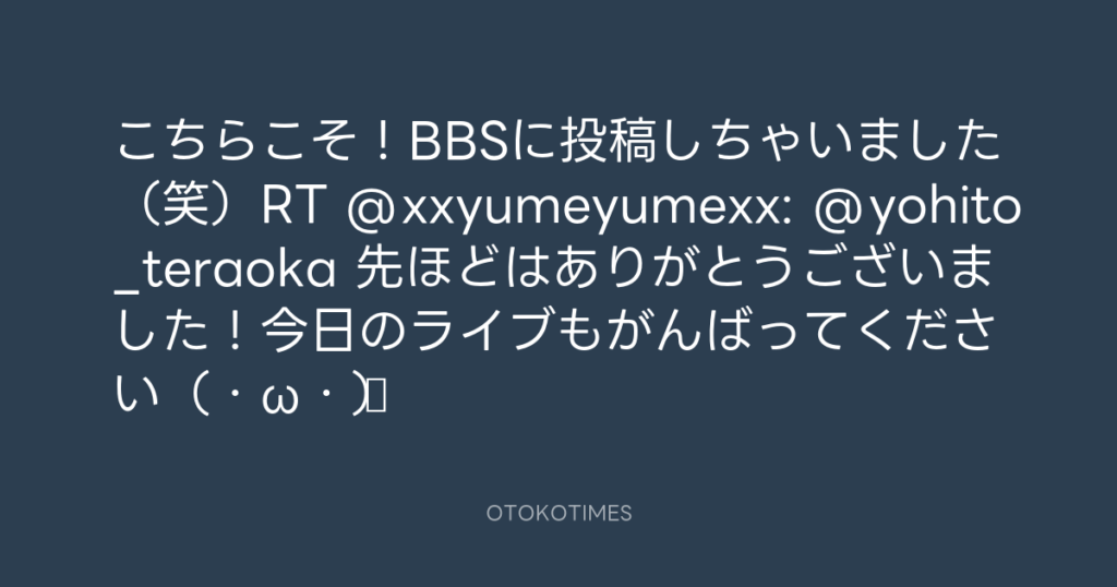 こちらこそ!BBSに投稿しちゃいました(笑)RT @xxyumeyumexx: @yohito_teraoka 先... -