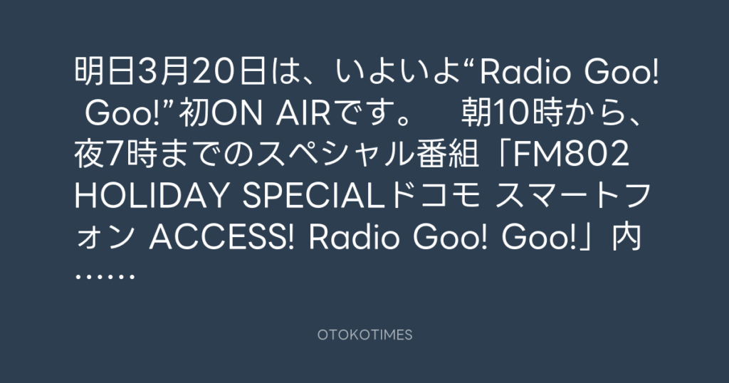 明日3月20日は、いよいよ“Radio Goo! Goo!”初ON AIRです。 朝10時から、夜7時まで... -