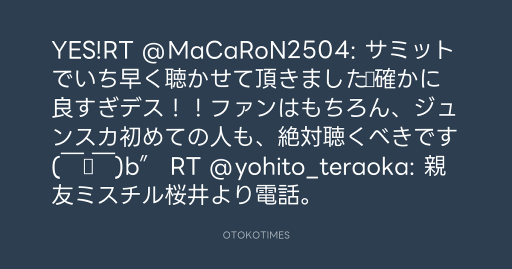 YES!RT @MaCaRoN2504: サミットでいち早く聴かせて頂きました☆確かに良すぎデス!... -