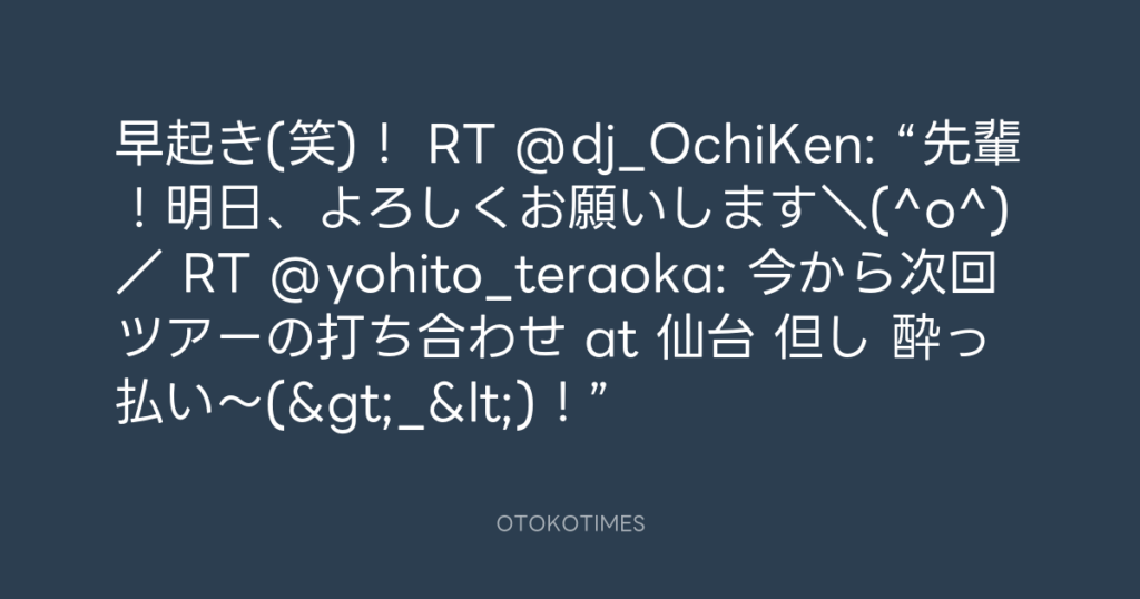 早起き(笑)! RT @dj_OchiKen: “先輩!明日、よろしくお願いします\(^o^)/ RT @y... -