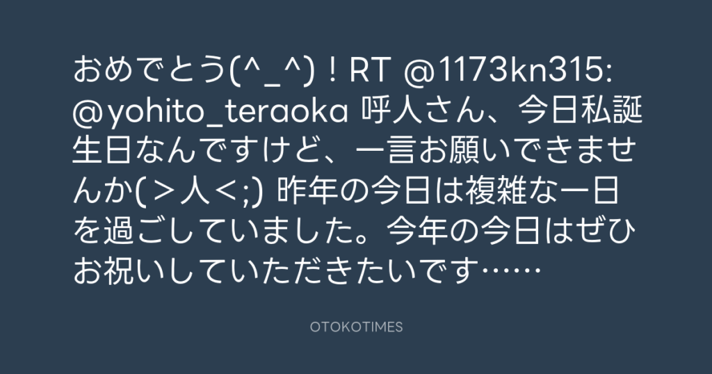 おめでとう(^_^)!RT @1173kn315: @yohito_teraoka 呼人さん、今日私誕生日なんで... -