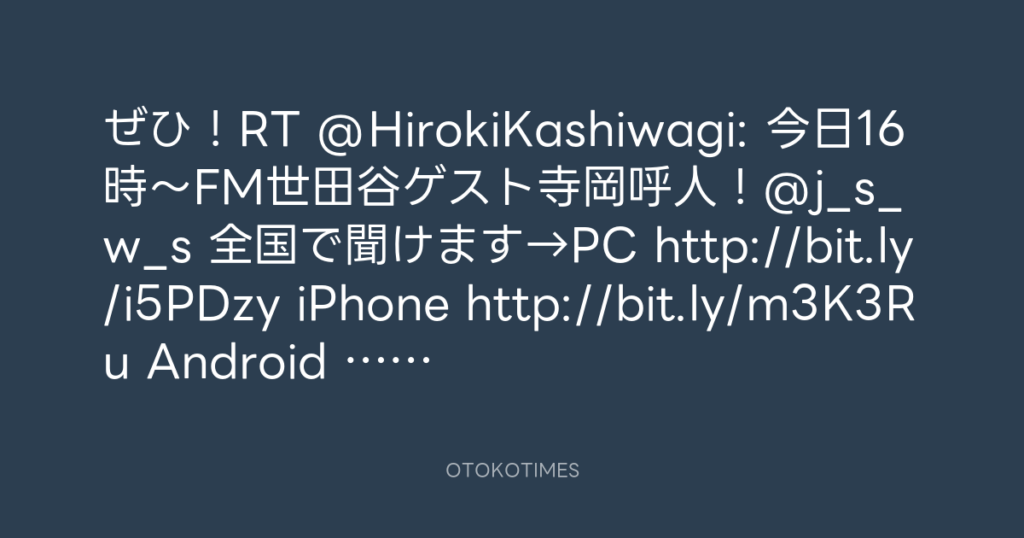 ぜひ!RT @HirokiKashiwagi: 今日16時~FM世田谷ゲスト寺岡呼人!@j_s_w_s 全国で... -