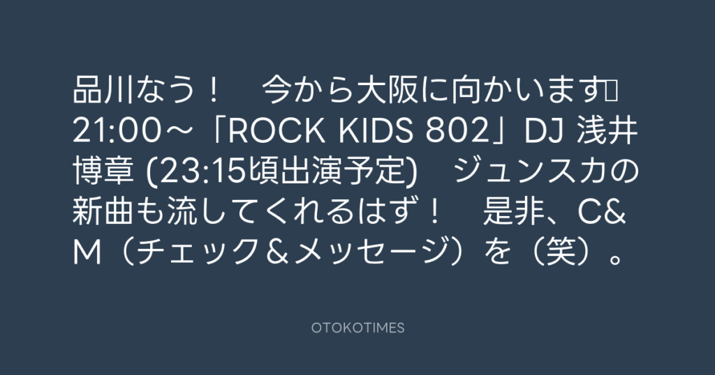 品川なう! 今から大阪に向かいます♫ 21:00〜「ROCK KIDS 802」DJ 浅井博章 (23:... -
