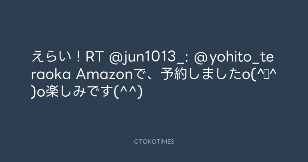 えらい!RT @jun1013_: @yohito_teraoka Amazonで、予約しましたo(^▽^)o楽しみです... -