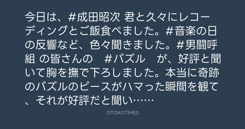 今日は、#成田昭次 君と久々にレコーディングとご飯食べました。#音楽の日 の反響... -
