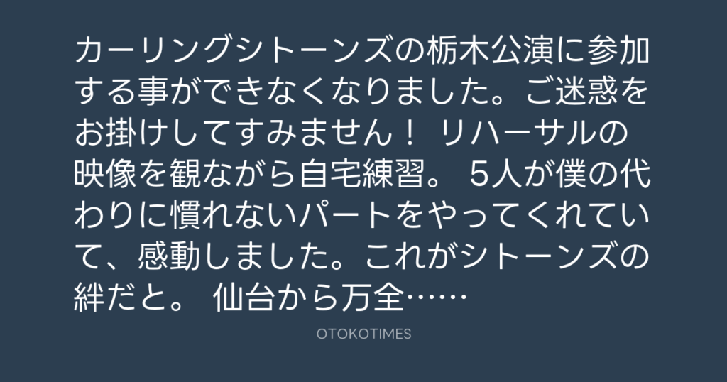 カーリングシトーンズの栃木公演に参加する事ができなくなりました。ご迷惑をお掛... -