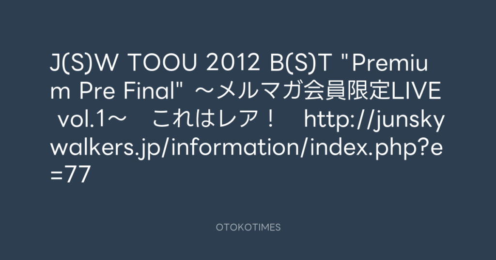 J(S)W TOOU 2012 B(S)T "Premium Pre Final" ~メルマガ会員限定LIVE vol.1~ こ...