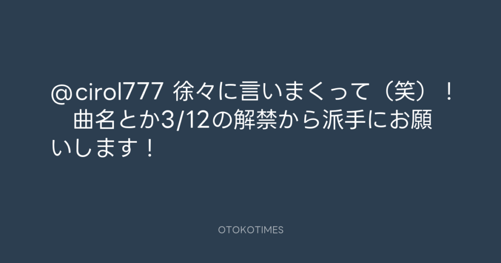 @cirol777 徐々に言いまくって(笑)! 曲名とか3/12の解禁から派手にお願いします! -