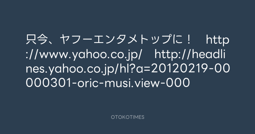 只今、ヤフーエンタメトップに! http://www.yahoo.co.jp/ http://headlines.yah... -