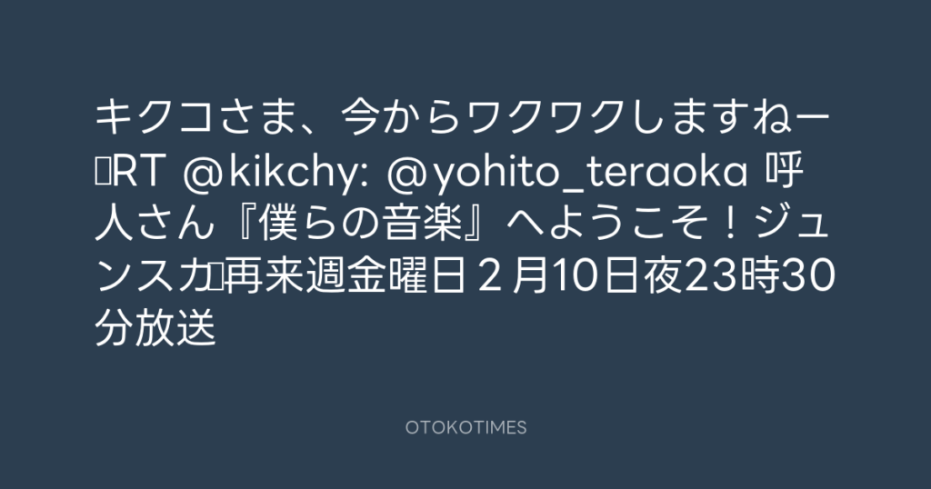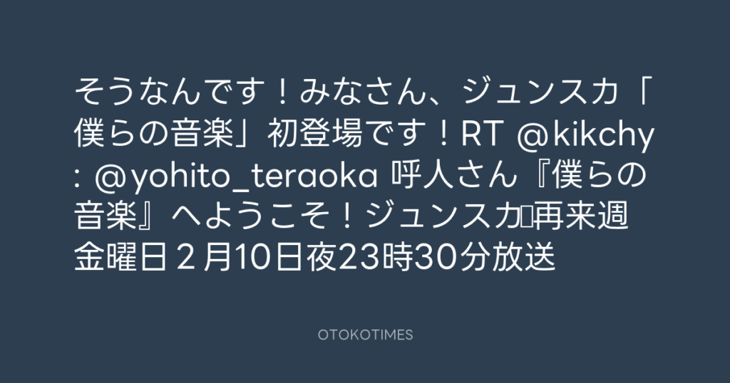 そうなんです!みなさん、ジュンスカ「僕らの音楽」初登場です!RT @kikchy: @yohi...