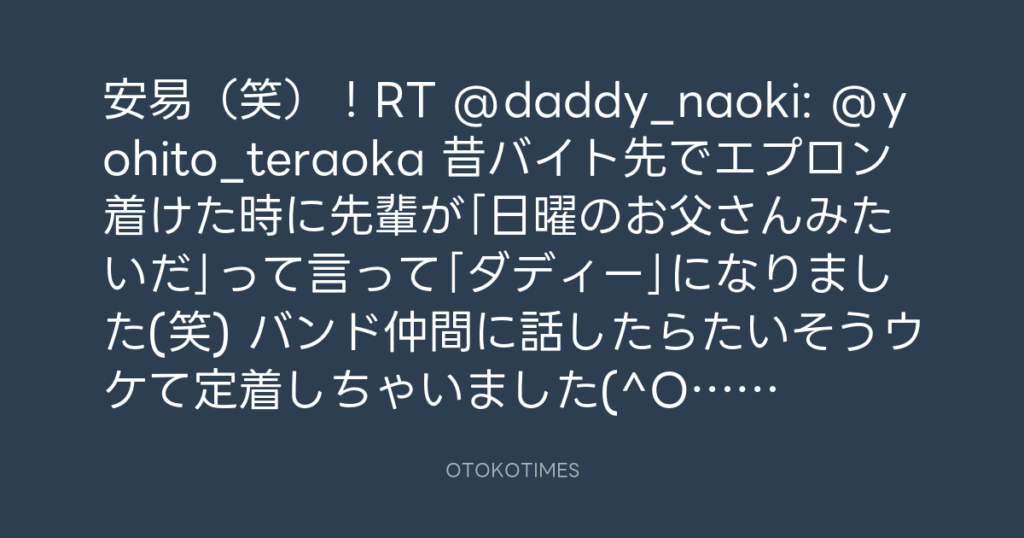 安易(笑)!RT @daddy_naoki: @yohito_teraoka 昔バイト先でエプロン着けた時に先... -