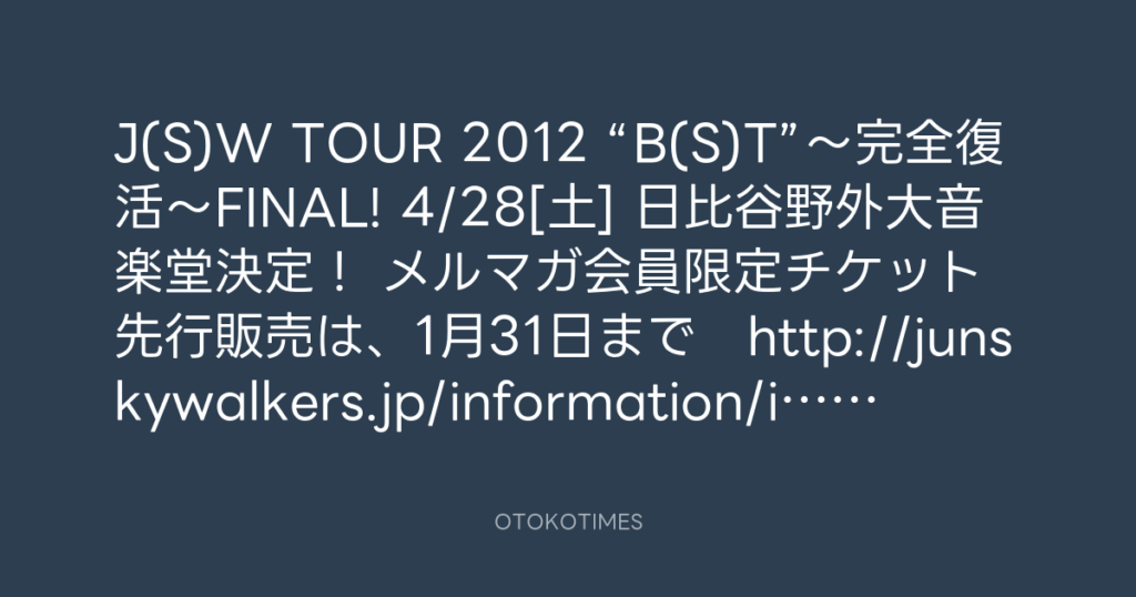 J(S)W TOUR 2012 “B(S)T”~完全復活~FINAL! 4/28[土] 日比谷野外大音楽堂決定! ... -