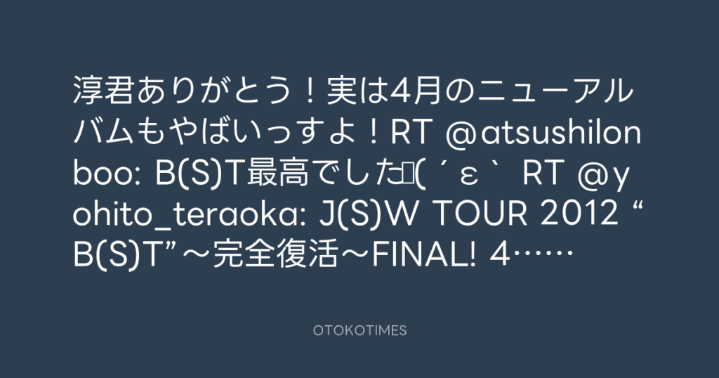 淳君ありがとう!実は4月のニューアルバムもやばいっすよ!RT @atsushilonboo: B(S... -
