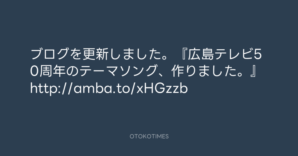 ブログを更新しました。『広島テレビ50周年のテーマソング、作りました。』http://... -