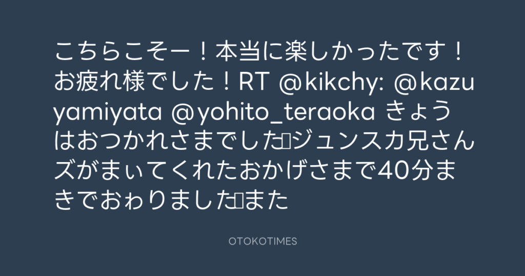 こちらこそー!本当に楽しかったです!お疲れ様でした!RT @kikchy: @kazuyamiyata... -