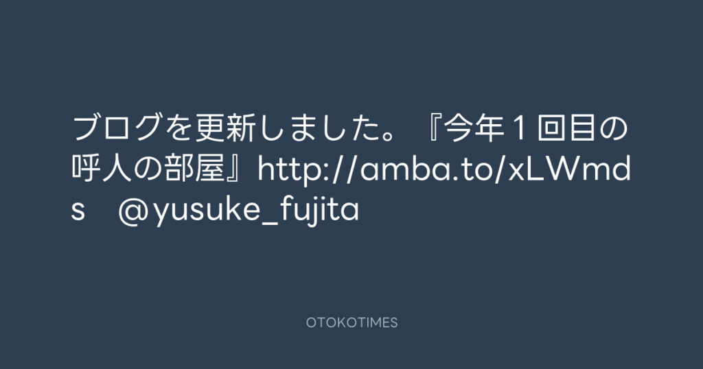 ブログを更新しました。『今年1回目の呼人の部屋』http://amba.to/xLWmds @yusuk... -