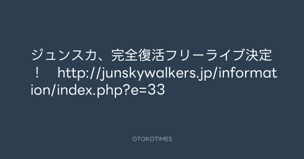 ジュンスカ、完全復活フリーライブ決定! http://junskywalkers.jp/information/i...