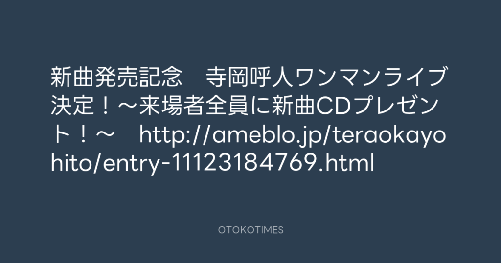 新曲発売記念 寺岡呼人ワンマンライブ決定!~来場者全員に新曲CDプレゼント!~... -