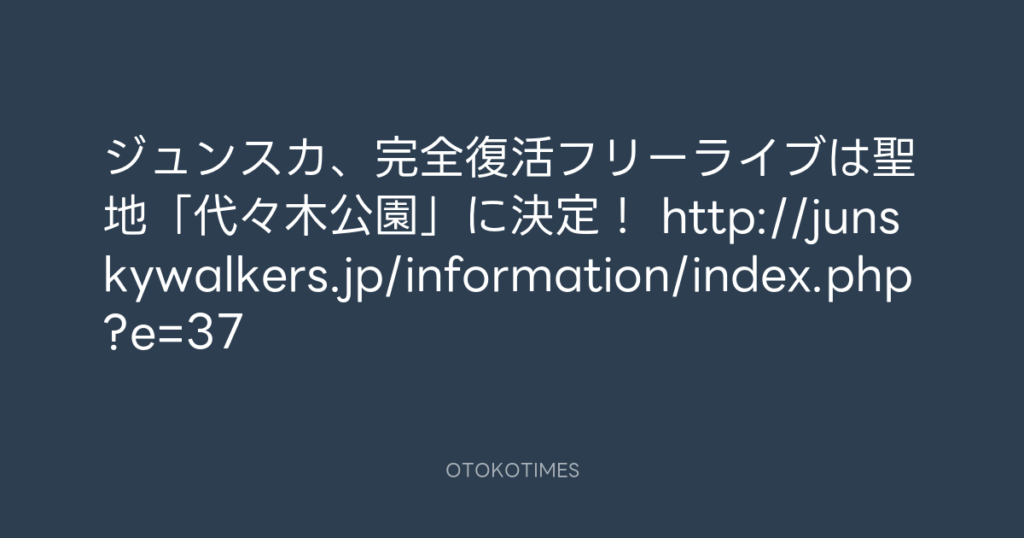ジュンスカ、完全復活フリーライブは聖地「代々木公園」に決定! http://junskywal... -