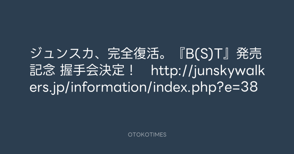 ジュンスカ、完全復活。『B(S)T』発売記念 握手会決定! http://junskywalkers.jp... -