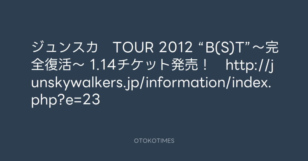 ジュンスカ TOUR 2012 “B(S)T”〜完全復活〜 1.14チケット発売! http://junskywa... -