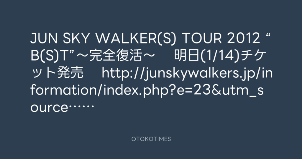 JUN SKY WALKER(S) TOUR 2012 “B(S)T”~完全復活~ 明日(1/14)チケット発売 ht... -