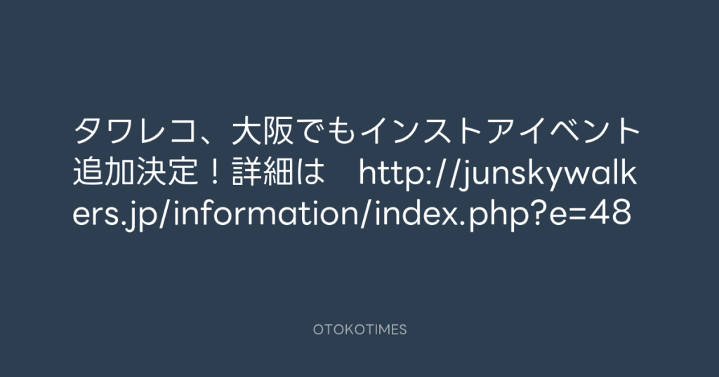タワレコ、大阪でもインストアイベント追加決定!詳細は http://junskywalkers.jp... -