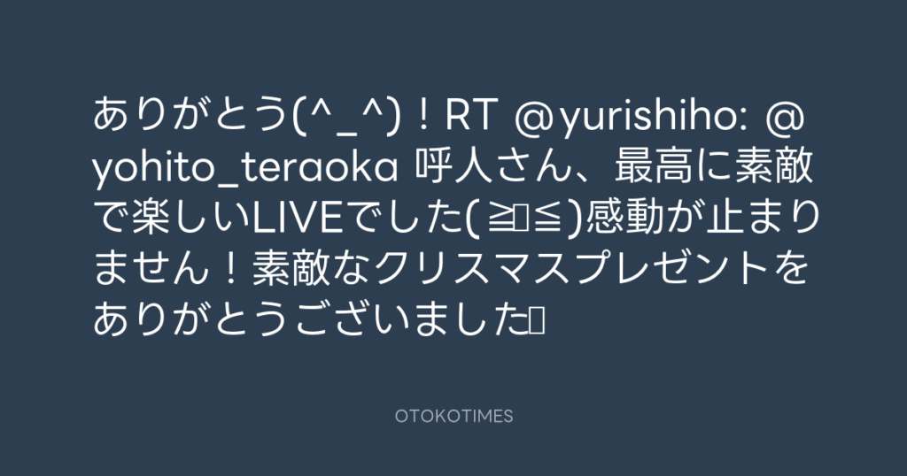 ありがとう(^_^)!RT @yurishiho: @yohito_teraoka 呼人さん、最高に素敵で楽しいL... -
