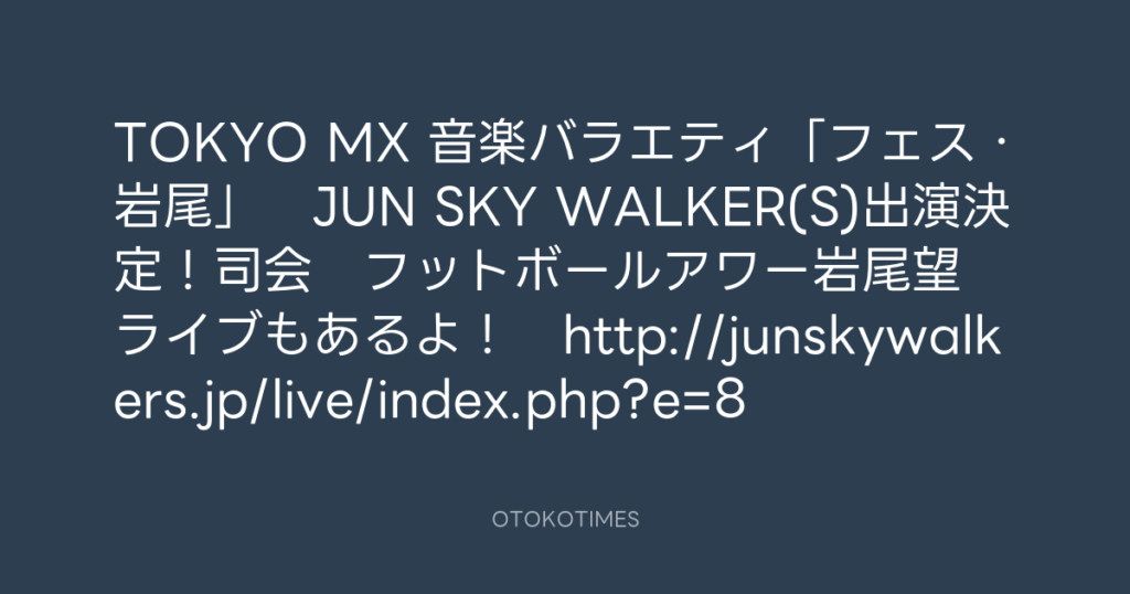 TOKYO MX 音楽バラエティ「フェス・岩尾」 JUN SKY WALKER(S)出演決定!司会 フ... -