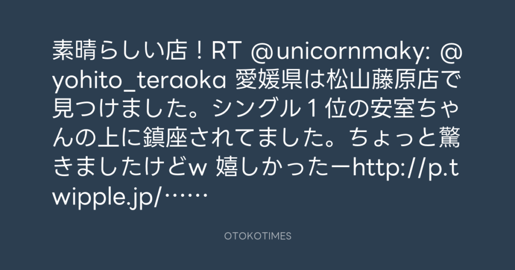 素晴らしい店!RT @unicornmaky: @yohito_teraoka 愛媛県は松山藤原店で見つけまし... -
