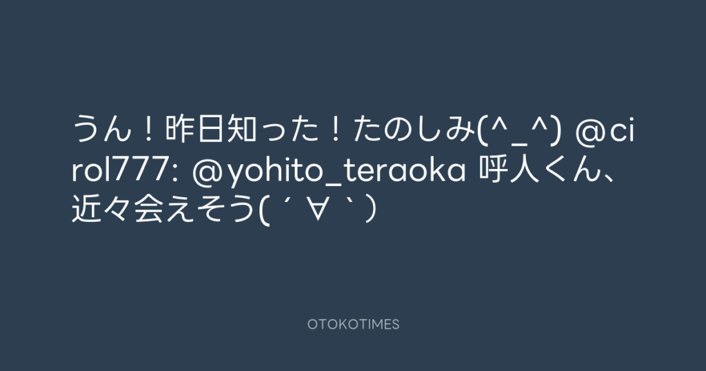 うん!昨日知った!たのしみ(^_^) @cirol777: @yohito_teraoka 呼人くん、近々会え... -