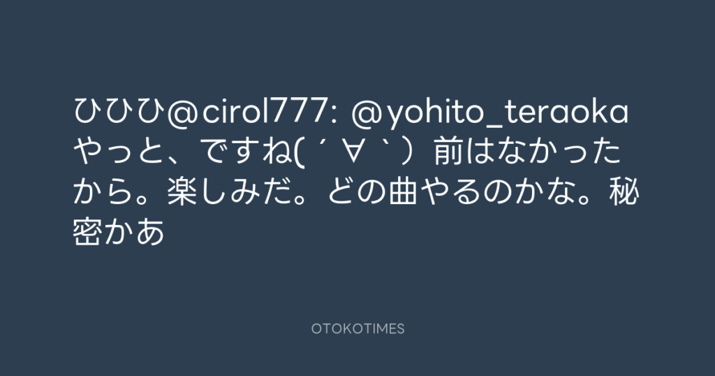 ひひひ@cirol777: @yohito_teraoka やっと、ですね(´∀`)前はなかったから。楽し... -