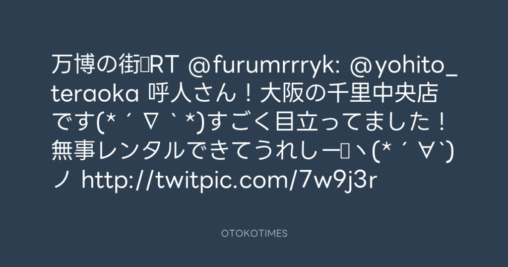 万博の街♫RT @furumrrryk: @yohito_teraoka 呼人さん!大阪の千里中央店です(*´∇`... -