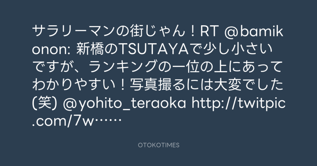サラリーマンの街じゃん!RT @bamikonon: 新橋のTSUTAYAで少し小さいですが、ラン... -