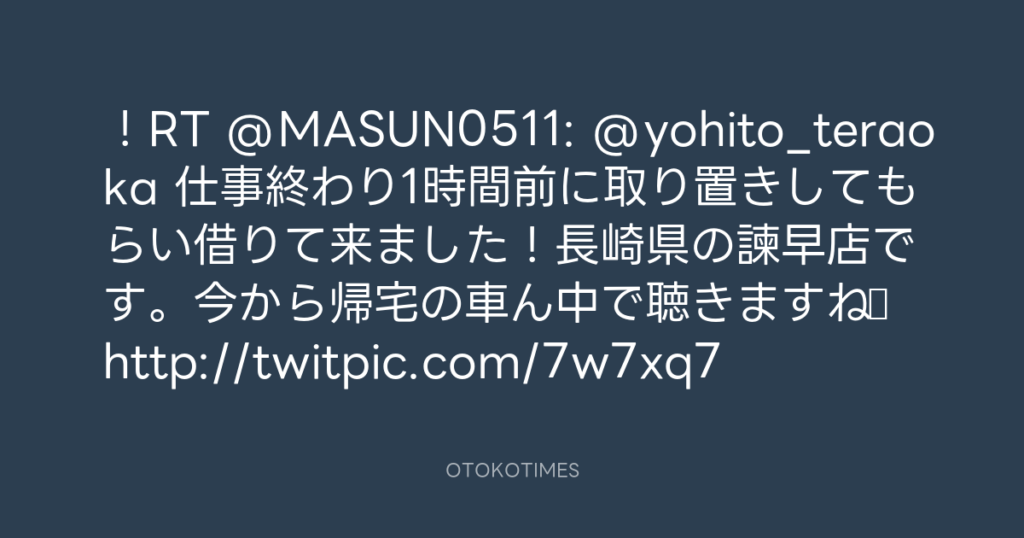 !RT @MASUN0511: @yohito_teraoka 仕事終わり1時間前に取り置きしてもらい借りて... -