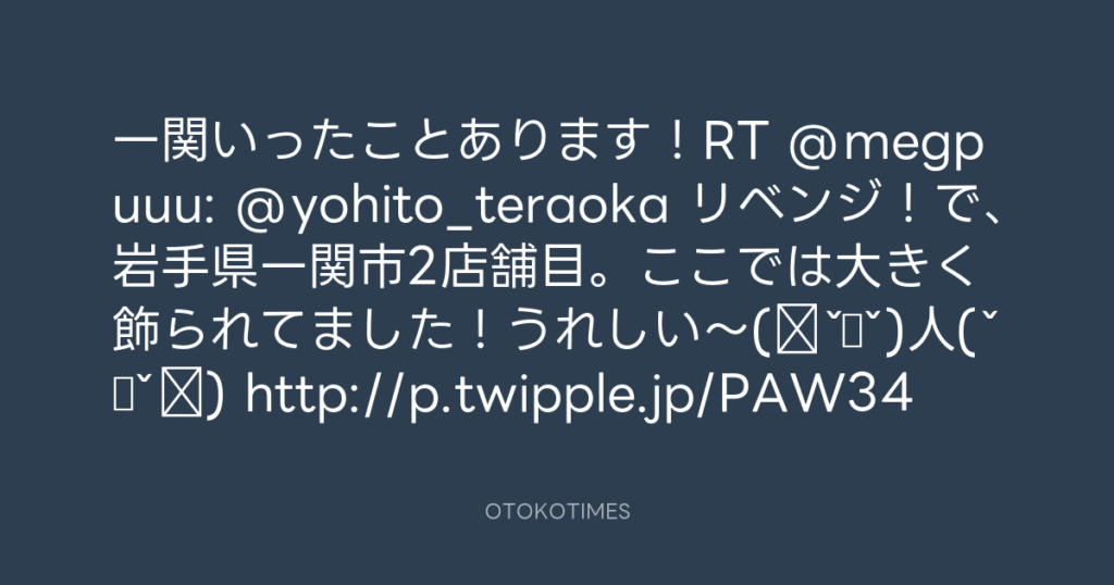 ありがとう(^_^)!RT @megpuuu: @yohito_teraoka 岩手県一関市です。ただ「サ行」... -