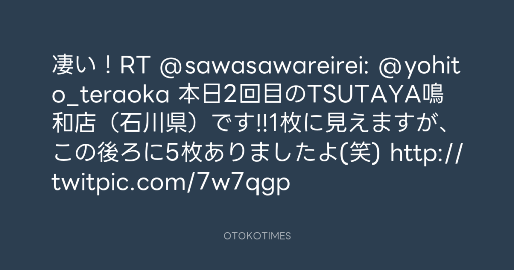 凄い!RT @sawasawareirei: @yohito_teraoka 本日2回目のTSUTAYA鳴和店(石川県)... -