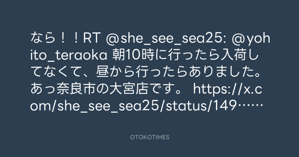 なら!!RT @she_see_sea25: @yohito_teraoka 朝10時に行ったら入荷してなくて、昼...