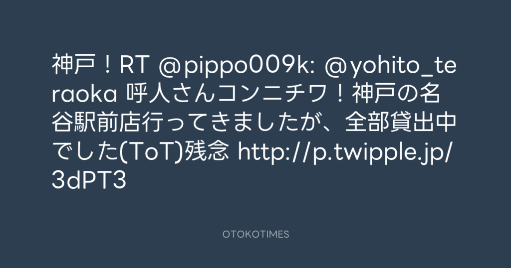 神戸!RT @pippo009k: @yohito_teraoka 呼人さんコンニチワ!神戸の名谷駅前店行っ... -