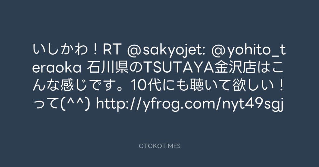いしかわ!RT @sakyojet: @yohito_teraoka 石川県のTSUTAYA金沢店はこんな感じです... -