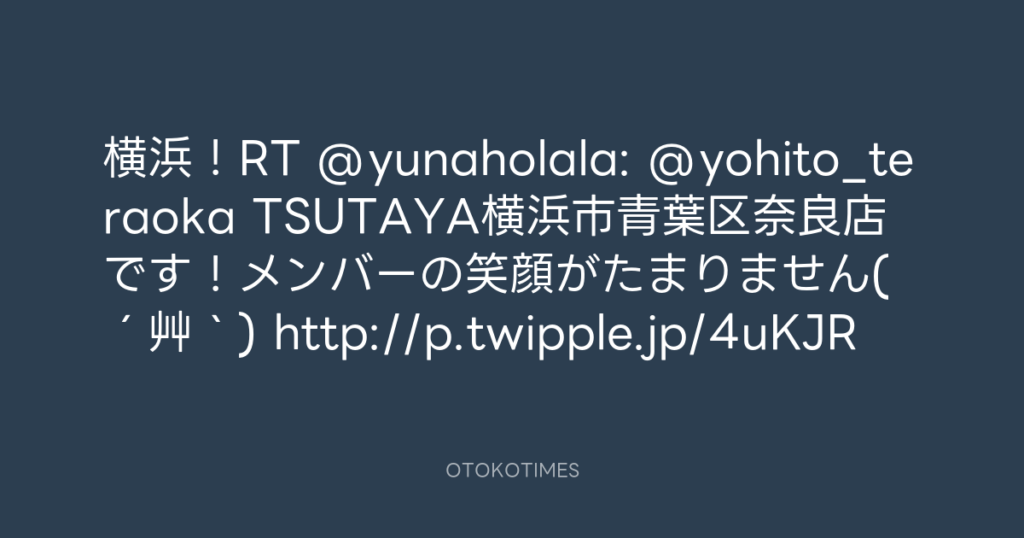 横浜!RT @yunaholala: @yohito_teraoka TSUTAYA横浜市青葉区奈良店です!メンバー... -