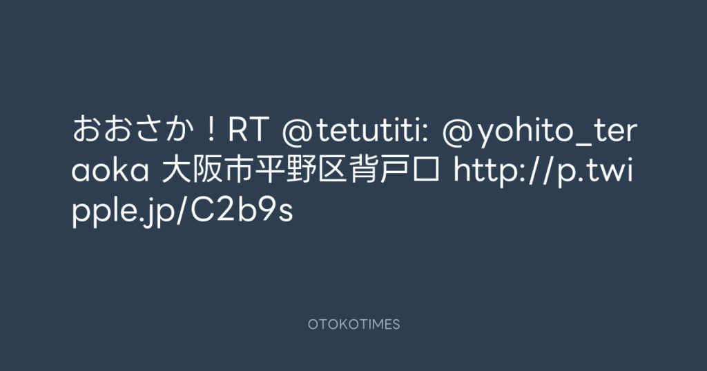 おおさか!RT @tetutiti: @yohito_teraoka 大阪市平野区背戸口 http://p.twipple.j... -