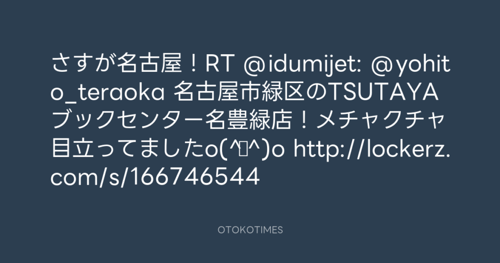 さすが名古屋!RT @idumijet: @yohito_teraoka 名古屋市緑区のTSUTAYAブックセンタ... -