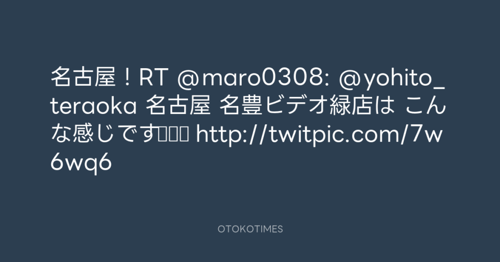 名古屋!RT @maro0308: @yohito_teraoka 名古屋 名豊ビデオ緑店は こんな感じです☆... -