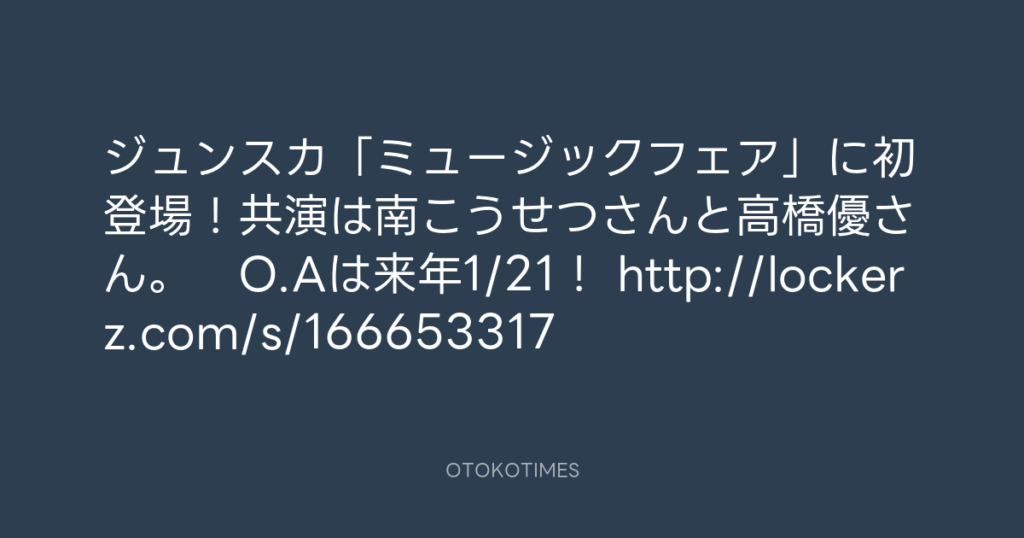 ジュンスカ「ミュージックフェア」に初登場!共演は南こうせつさんと高橋優さん。... -